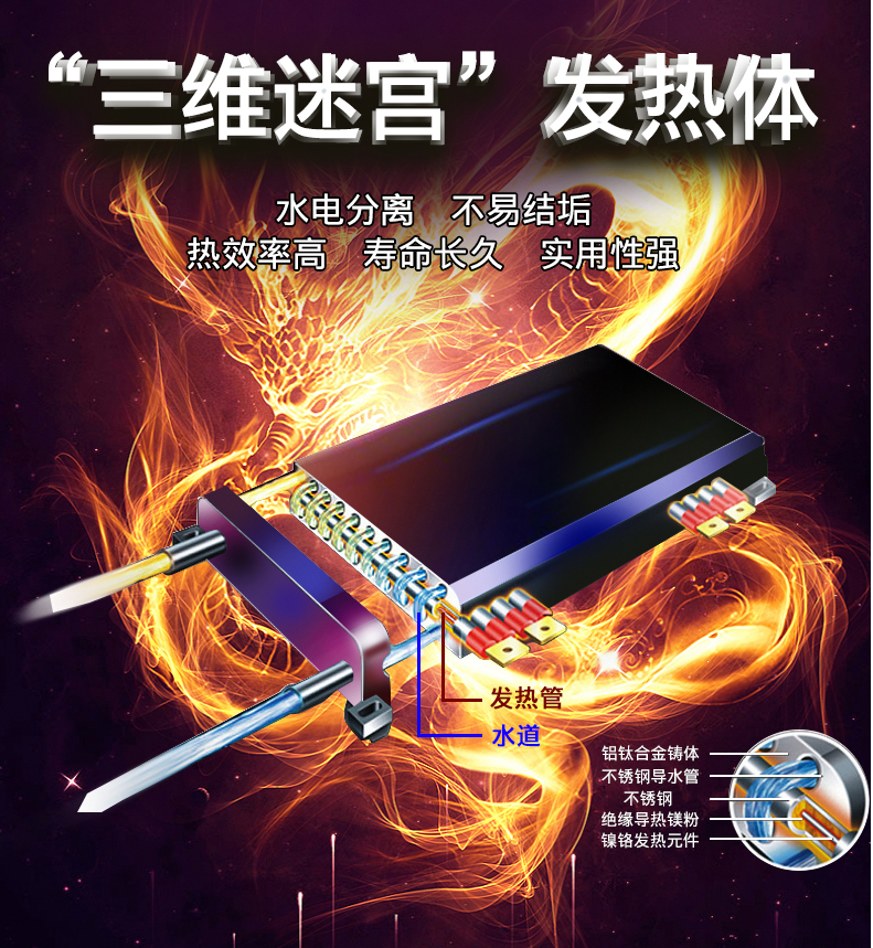 我们优密斯电壁挂炉采用三维迷宫加热体,真正的水电分离技术,既不漏电也不漏水,安全性极大的提高;还有全自动自检保护功能,全自动泄压功能,高效安全,使用寿命长,不易结水垢。